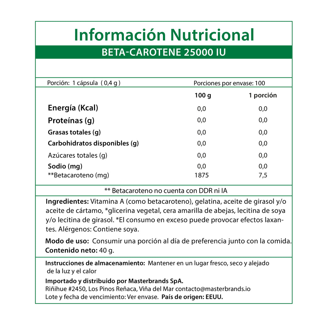 Betacaroteno 25,000 UI (7500 mcg) altamente concentrado
