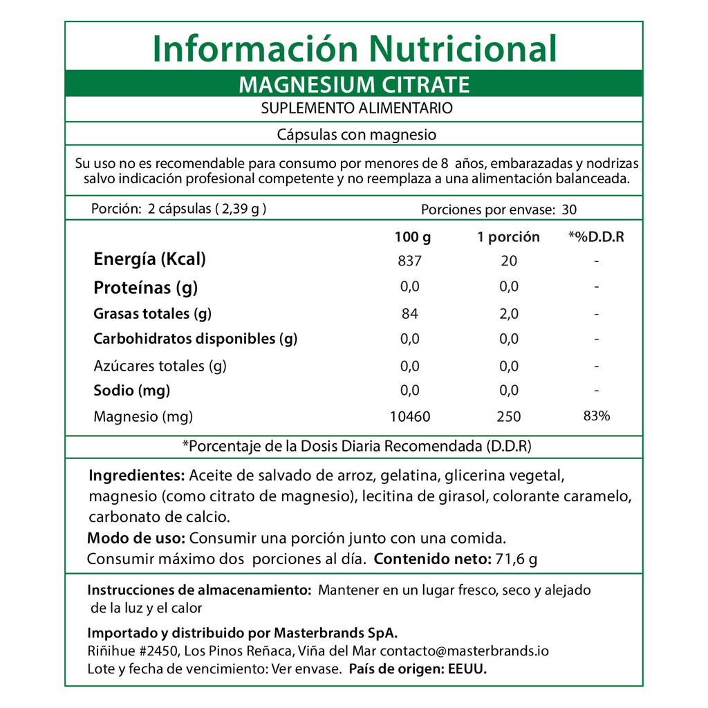 Citrato de Magnesio 250 mg - 60 cápsulas blandas