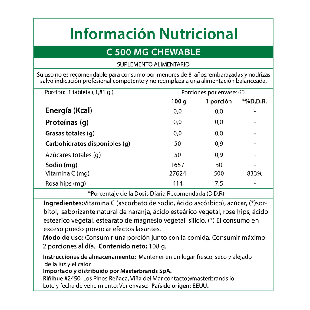 Vitamina C 1000 mg x2 comprimidos - 60 Comprimidos Masticables